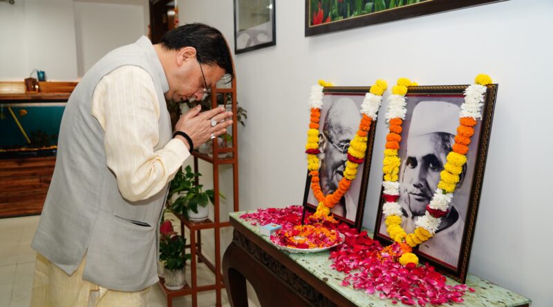 मुख्यमंत्री श्री पुष्कर सिंह धामी ने गांधी जयंती के अवसर पर मुख्यमंत्री आवास में राष्ट्रपिता महात्मा गांधी का स्मरण कर