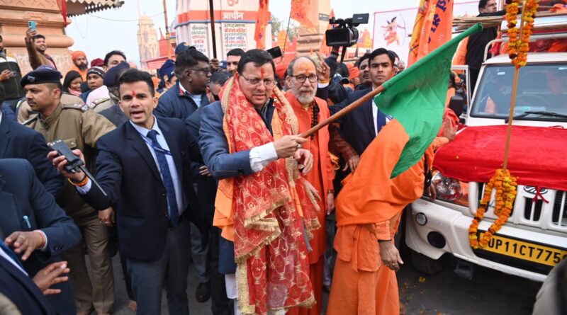 हरिद्वार: मुख्यमंत्री श्री पुष्कर सिंह धामी ने सोमवार को मकर संक्रान्ति के अवसर पर, आगामी 22 जनवरी,2024 को अयोध्या में श्रीराम के बालस्वरूप की प्राण प्रतिष्ठा के शुभ अवसर हेतु हरकीपैड़ी पर मां गंगा की पूर्जा-अर्चना करने के पश्चात मंत्रोच्चारण के बीच मां गंगा का पवित्र जल ब्रह्मकुण्ड से कलशों में एकत्रित कर कलश यात्रा को अयोध्या के लिये रवाना किया।