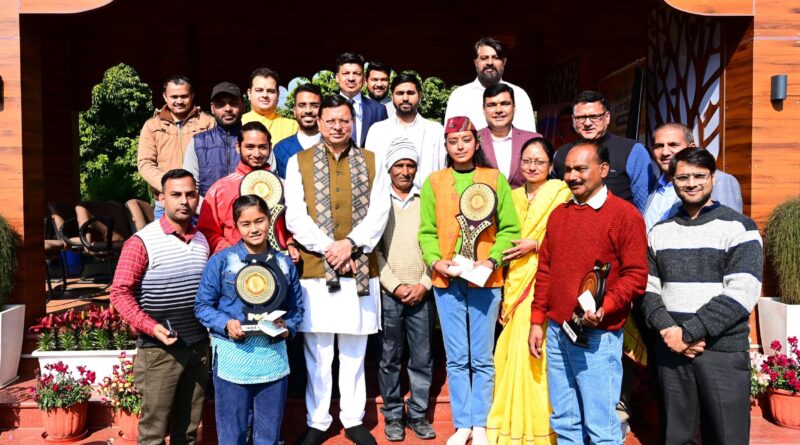 बुधवार को मुख्यमंत्री श्री पुष्कर सिंह धामी ने मुख्यमंत्री आवास में आयोजित कार्यक्रम में प्रथम दुर्गेश अमोली, द्वितीय शाम्भवी मुरारी, तृतीय विनय कुमार, चतुर्थ आयुषी पांडे, तथा पंचम प्रज्ञा पंत को ट्रॉफी एवं पुरस्कार देकर सम्मानित किया।