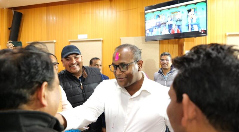 शुक्रवार को मुख्य निर्वाचन अधिकारी कार्यालय देहरादून द्वारा सचिवालय स्थित मीडिया सेंटर में पत्रकार होली मिलन समारोह का आयोजन किया गया। मुख्य निर्वाचन अधिकारी डॉ. बी.वी.आर.सी पुरूषोत्तम ने सभी मीडिया प्रतिनिधियों को होली की शुभकामना देते हुए राज्य में मतदान प्रतिशत बढ़ाने के लिए प्रिन्ट, इलेक्ट्रॉनिक और सोशल मीडिया माध्यमों से लोगों को जागरूक करने की अपील भी की।