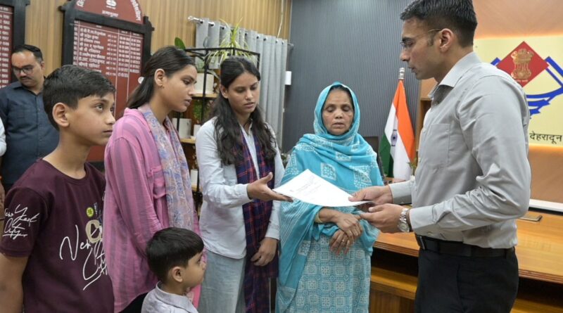 1 बेटी खो चुकी, 1 नन्ही नातिन व 3 अविवाहित बेटियों की असहाय विधवा माता क्षमा परवीन का डीएम ने करवाया बैंक ऋण माफ करवाते हुए बैंक से दिलाई नो ड्यूज जारी करवा दिया गया है। विधवा क्षमा का बैंक ऋण वन टाइम सेटलमेंट कराते हुए एनओसी जारी की गई तथा शेष 33 हजार धनराशि भी डीएम ने स्वयं जमा करवाई है। बेटी के विवाह के लिए वर्ष 2014 में डीसीबी बैंक से लिया था सवा लाख का ऋण लिया था। पति की वर्ष 2014 व बड़ी विवाहित बेटी की वर्ष 2020 में कोविड में मृत्यु हो चुकी है। पति की वर्ष 2014 व बड़ी विवाहित बेटी की वर्ष 2020 में कोविड में चुकी हो चुकी है। पारिवारिक संकट एवं बच्चों की जिम्मेदारियां के चलते शेष ऋण चुकाने में रही असमर्थ हो गयी। 3 अविवाहित बेटियों, तथा 5 वर्षीय नातिन के भरणपोषण शिक्षा की जिम्मेदारी विधवा क्षमा पर आन पड़ी तो जिला प्रशासन देहरादून की सहायता रूपी टीम सहारा बन गयी। नातिन आयरा को आरटीई के तहत नजदीकी प्राईवेट स्कूल में दाखिला दिला दिया है। छोटी बेटी फैजा की शिक्षा नंदा- सुनंदा से पुनर्जीवित करते हुए 27 हजार फीस प्रोजेक्ट ‘‘नंदा-सुनंदा’’ से दिलाई तथा मौके पर ही आय प्रमाण पत्र जारी करवाया गया है।