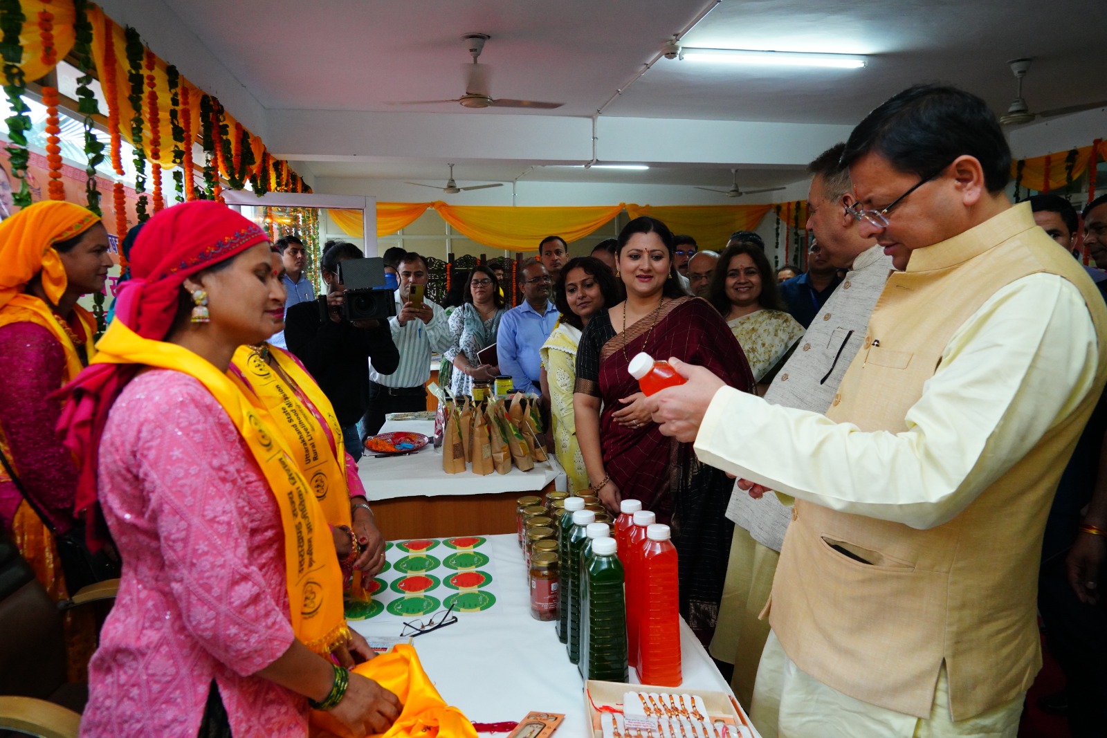 मुख्यमंत्री श्री पुष्कर सिंह धामी ने सचिवालय में महिला स्वयं सहायता समूहों द्वारा लगाये गये राखी के स्टॉलों का अवलोकन किया।