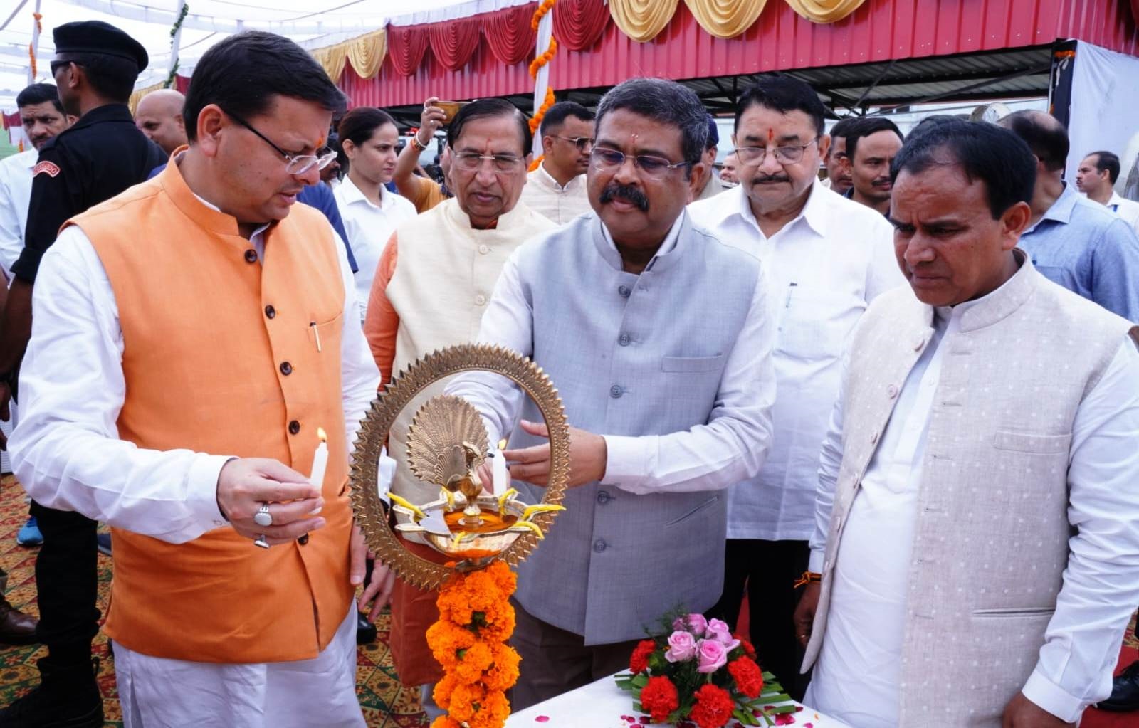 मुख्यमंत्री श्री पुष्कर सिंह धामी एवं केन्द्रीय शिक्षा मंत्री श्री धर्मेन्द्र प्रधान ने मंगलवार को ननूरखेड़ा स्थित शिक्षा निदेशालय में राज्य के विद्या समीक्षा केन्द्र का लोकार्पण किया। इस अवसर पर राज्य के 141 पी.एम.श्री विद्यालयों एवं नेताजी सुभाष चन्द्र बोस आवासीय विद्यालय का शिलान्यास भी किया गया। मुख्यमंत्री एवं केन्द्रीय शिक्षा मंत्री ने राज्य में मुख्यमंत्री उच्च शिक्षा मेधावी छात्रवृत्ति योजना एवं मुख्यमंत्री उच्च शिक्षा शोध प्रोत्साहन योजना का शुभारंभ भी किया। कार्यक्रम में एन.डी.ए एवं आई.एम.ए में चयनित कैडेट को पुरूस्कार की धनराशि भी प्रदान की गई।